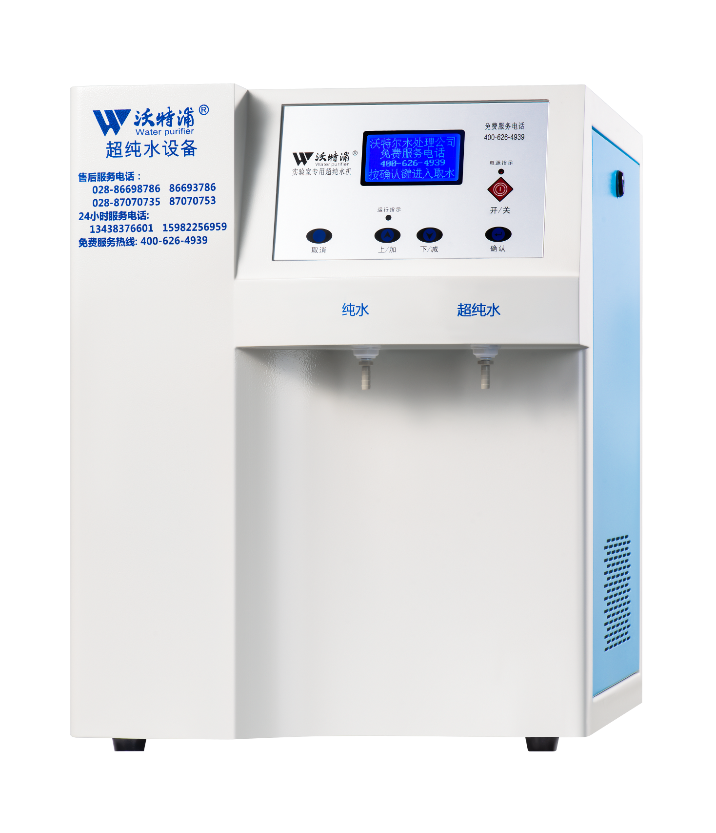 采用雙波長紫外消解系統(tǒng),除熱源超濾膜組件,采用進(jìn)口離子交換樹脂過濾,使超純水能滿足各種實(shí)驗(yàn)要求。